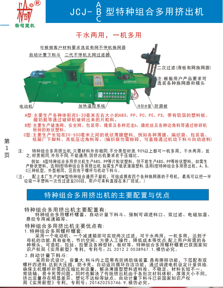 A型:主要生產各種體積在5-30毫米左右大小的ABS、PP、PC、PE、PS、帶有鋁箔的塑料板